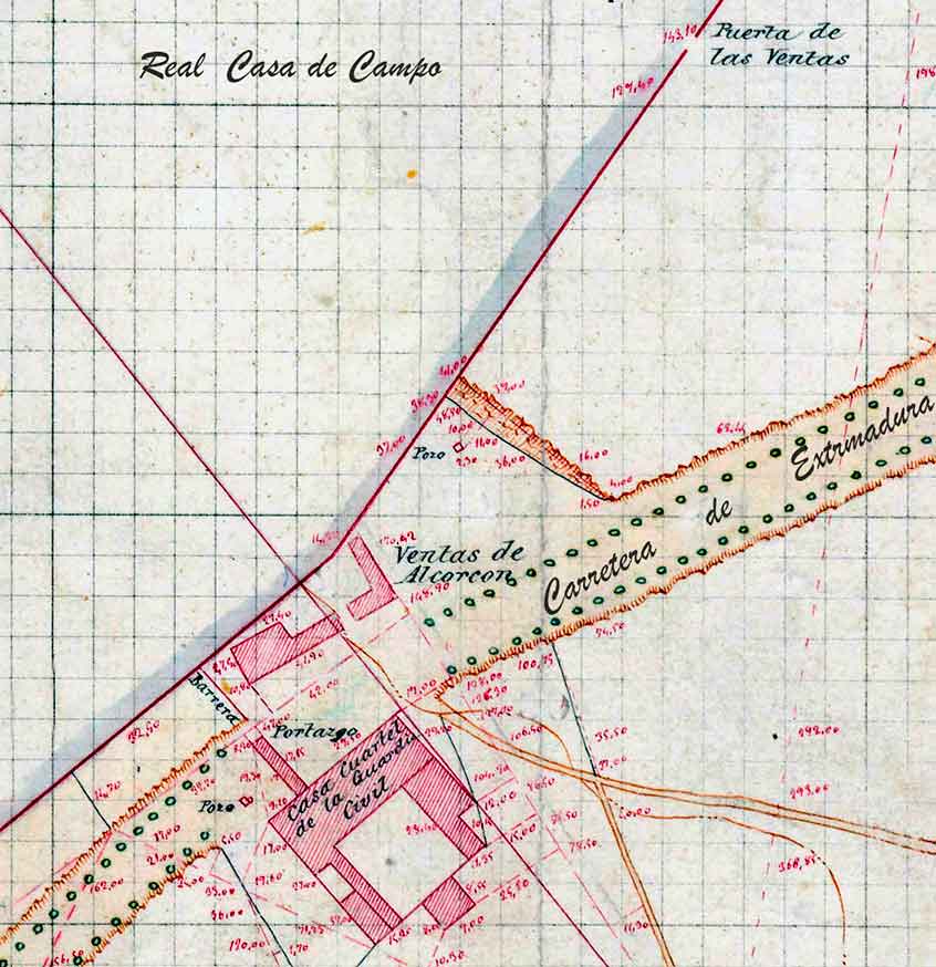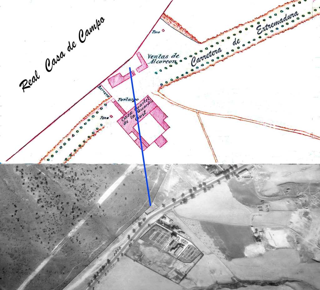 El sitio donde durante varios siglos estuvieron las Ventas de Alcorcón, es este lugar desapercibido, inconcreto; partido por la carretera de Extremadura, a un lado, al derecho si salimos de Madrid. Quizá, porque es muy difícil de concretar, la gasolinera del kilómetro 5.200 ocupe exactamente el lugar preciso de alguna de sus famosas ventas. Al otro lado las torretas eléctricas de alta tensión que tan poca confianza transmiten. No obstante y por avatares de la casualidad, es por ellas que algunos aventureros del siglo XXI pueden saber que la zona donde está instalada la subestación eléctrica en la Carretera de Extremadura, desde el 27 de mayo de 1943 -en ese año fue inaugurada la subestación eléctrica-, se llama subestación transformadora “Ventas de Alcorcón”. Pero como dije hay que ser un aguerrido aventurero para adentrarse por estos caminos imposibles, que entre la modernidad y el pasado, aún conservan restos -una casucha- que evocan las antiguas Ventas. Aunque el terreno que ocupa hoy esta subestación, fuera en los últimos años del siglo XIX la del cuartel de la guardia civil, que protegía el portazgo de las Ventas de Alcorcón.