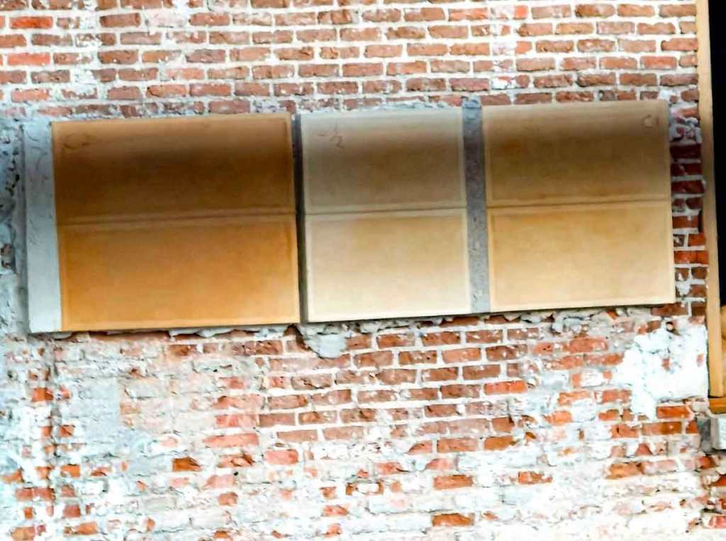Muestras de terminación de la fachada del Palacete y tejas que van a sustituir a las que ahora hay, ya en su momento criticamos ese modelo de teja. Como se ve es la típica teja árabe con cochuras diferentes para que dé mejor sensación, las tejas de abajo o de canal posiblemente sean todas de una misma cochura. Recuerdo a Pilar Mena de Patrimonio dándonos ideas a Luis y a mí para envejecer las tejas que puso Cleto Barreiro en 2014, el secreto era untarlas de yogur para que crearan una especie de liquen. Ya no hará falta.