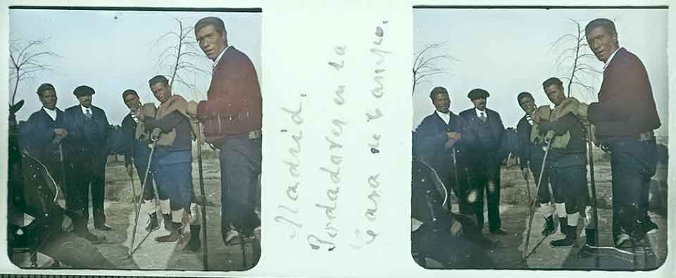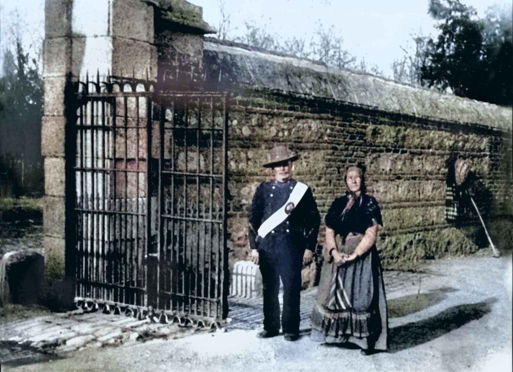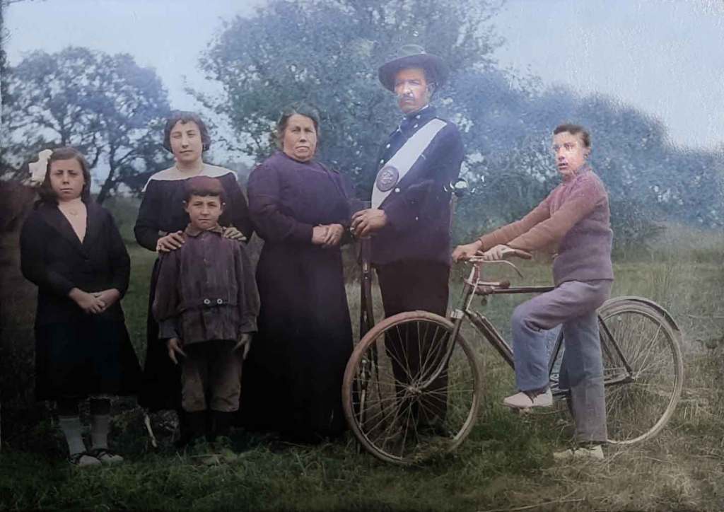 Hemos recibido infinidad de testimonios de familiares que tuvieron a sus abuelos o bisagüelos como guardas de la Casa de Campo. La mayoría no conocen más que de referencias de la labor que hacían, ya que había una gran variedad de guardas con diferentes cometidos. El testimonio más importante aportado al conocimiento de estas personas nos lo dio el Renegado, pero hubo otros como Robustiano que vemos aquí en esta fotografía de 1910 donde le vemos con su mujer y sus hijos.