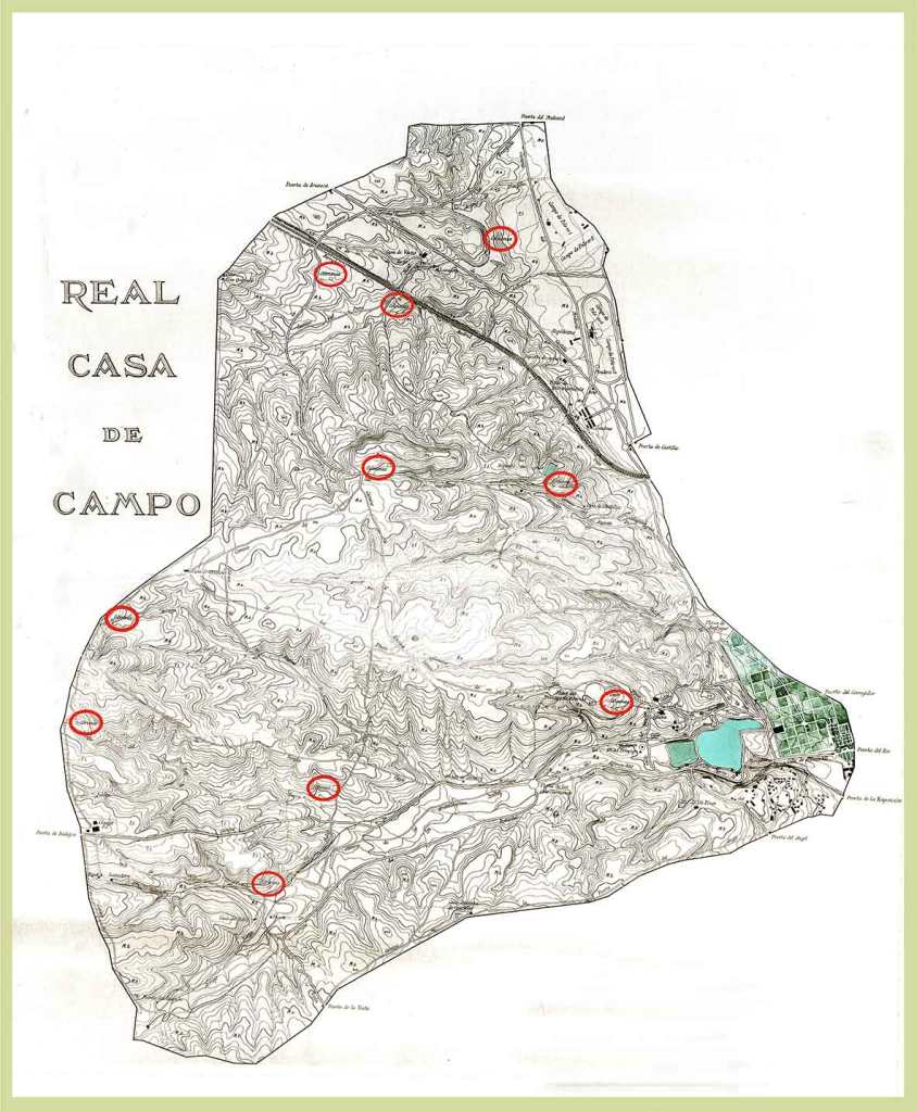 Aunque no haya documentación al respecto vemos en este plano de 1929 ya hay diez localizaciones de colmenas en la Casa de Campo, eran espacios de 20 x 10 m. en algunos casos dentro de un vallado de ladrillo o alambrada. Lo que indica que la apicultura era una práctica normal en la finca.