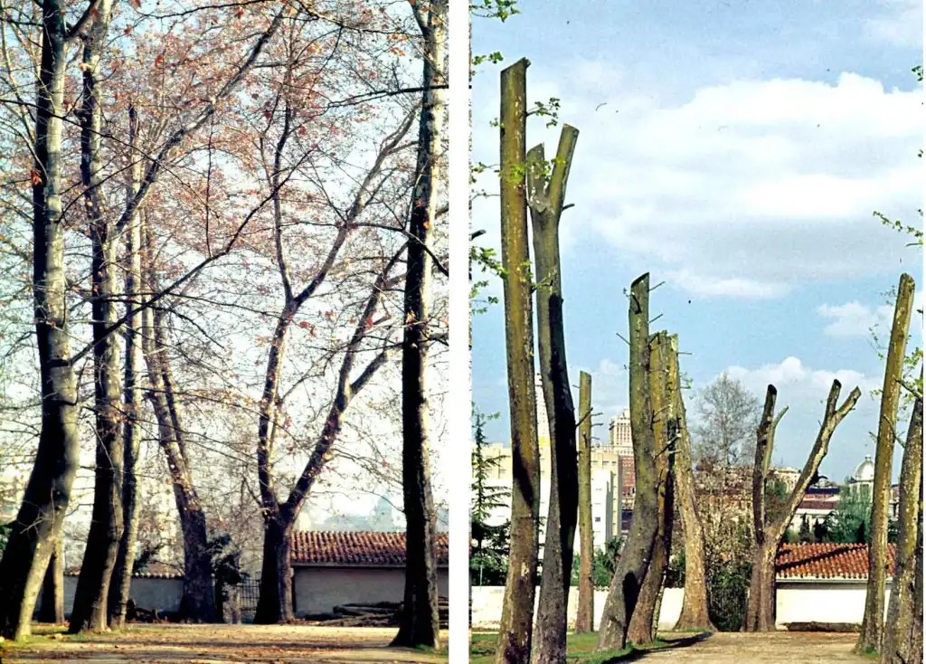 Estos longevos plátanos fueron seguramente de los que plantó el arbolista Pedro Dirac cuando diseñó el trazado de calles del Bosque de la Faisanera a principios del siglo XIX.