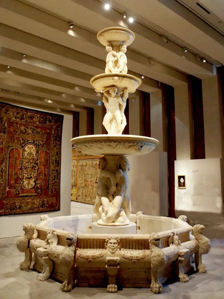 La Fuente del Águila se encuentra en la actualidad en la Galería de las Colecciones Reales a 812 metros de distancia de su ubicación original dentro del Jardín Reservado de Felipe II en la Casa de Campo donde estuvo más de 3 siglos.