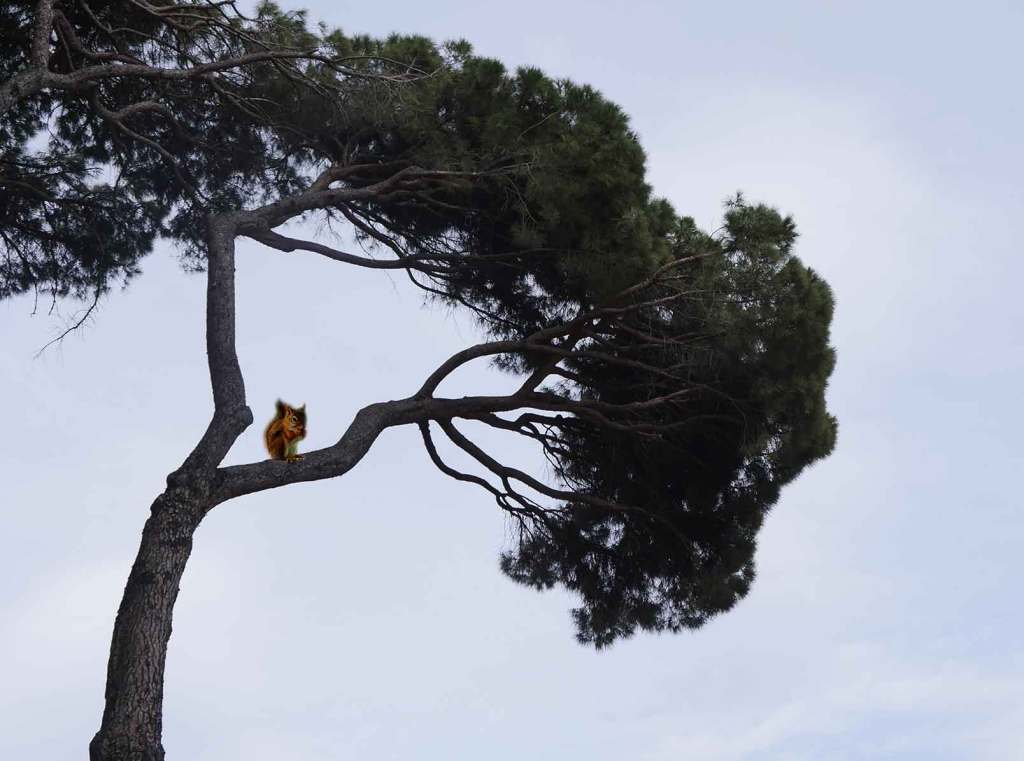 Vio entonces a una ardilla subida en uno de los grandes pinos, divisándolo todo.